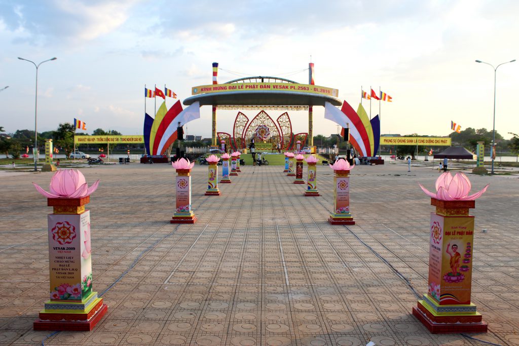Mọi công tác chuẩn bị cho Đại lễ Phật Đản Vesak như treo cờ theo dọc các trục đường chính, trang trí băng rôn khẩu hiệu, thiết trí lễ đài đến nay cơ bản hoàn thành.