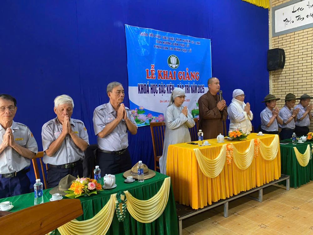 Sáng ngày 02 tháng 03 năm 2025 (nhằm ngày 03 /02/Ất tỵ), tại chùa Huyện Hội Gio Linh, huyện Gio Linh, tỉnh Quảng Trị. Phân ban GĐPT Huyện Gio Linh tổ chức Lễ Khai Giảng khóa tu học thường kỳ Huynh trưởng Bậc Kiên và Bậc Trì .