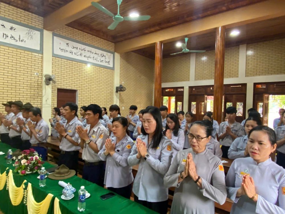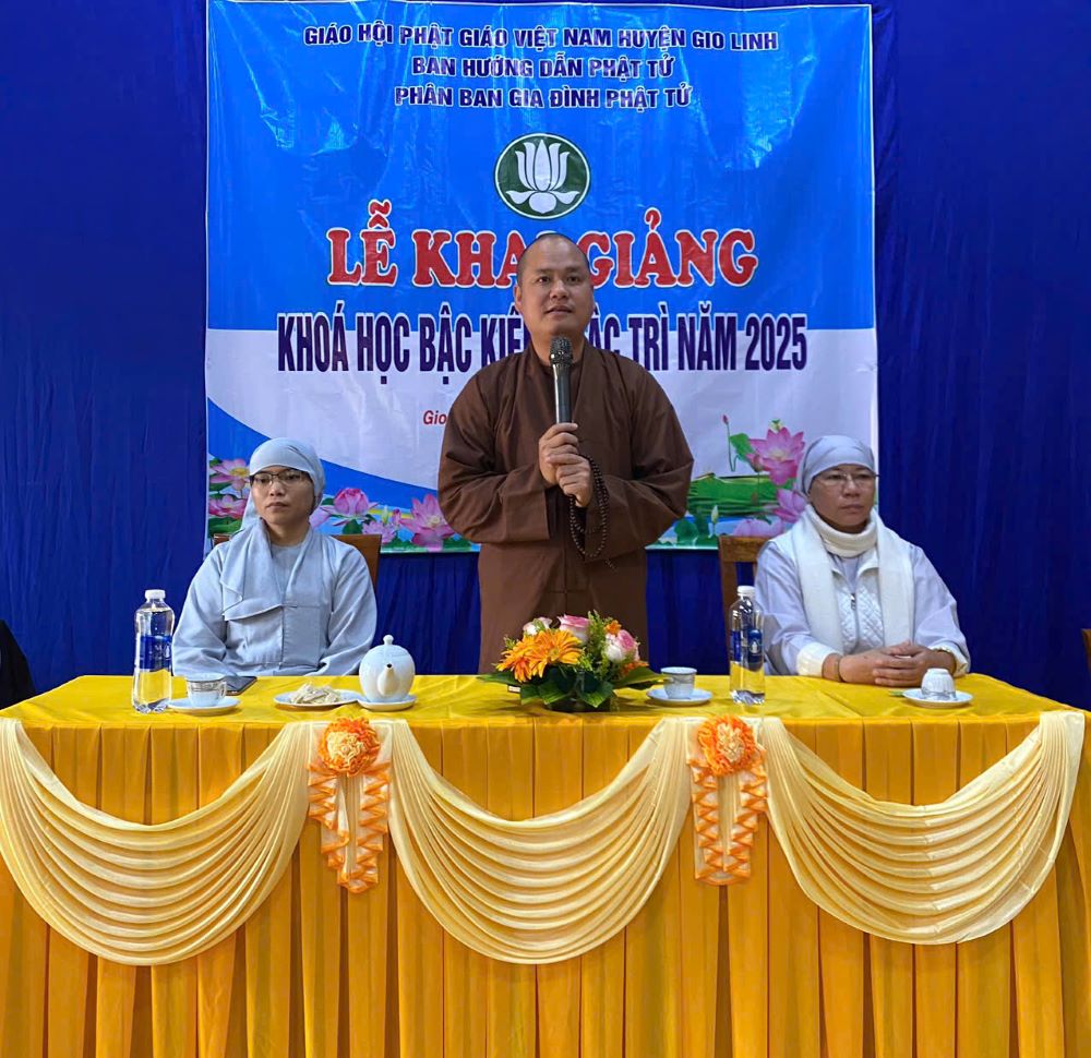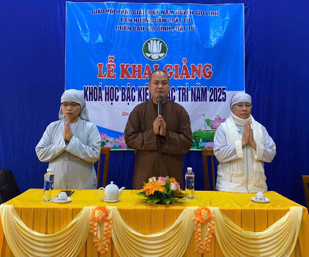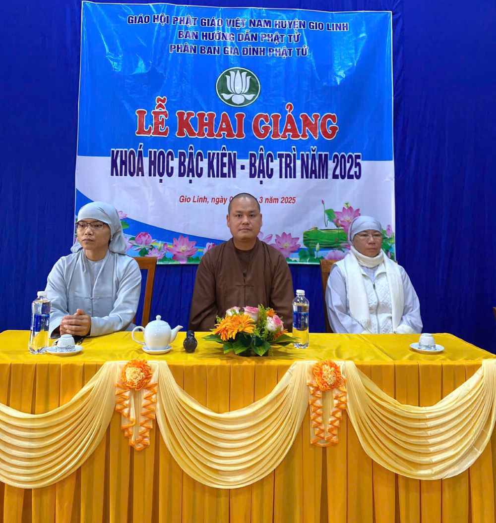 Quang lâm Chứng minh lễ Khai Giảng có Đại đức Thích Nguyên Chính, UVBTS GHPGVN tỉnh Quảng Trị – Phó trưởng BTS GHPGVN huyện Gio Linh – Trưởng BHD.PT huyện Gio Linh; Sư Cô Thích Nữ Tuệ Phương UVBTS GHPGVN huyện Gio Linh – Phó trưởng PB HDPT huyện Gio Linh; Sư Cô Thích Nữ Thoại Huyền UVBTS GHPGVN huyện Gio Linh – Phó trưởng PB HDPT huyện Gio Linh.