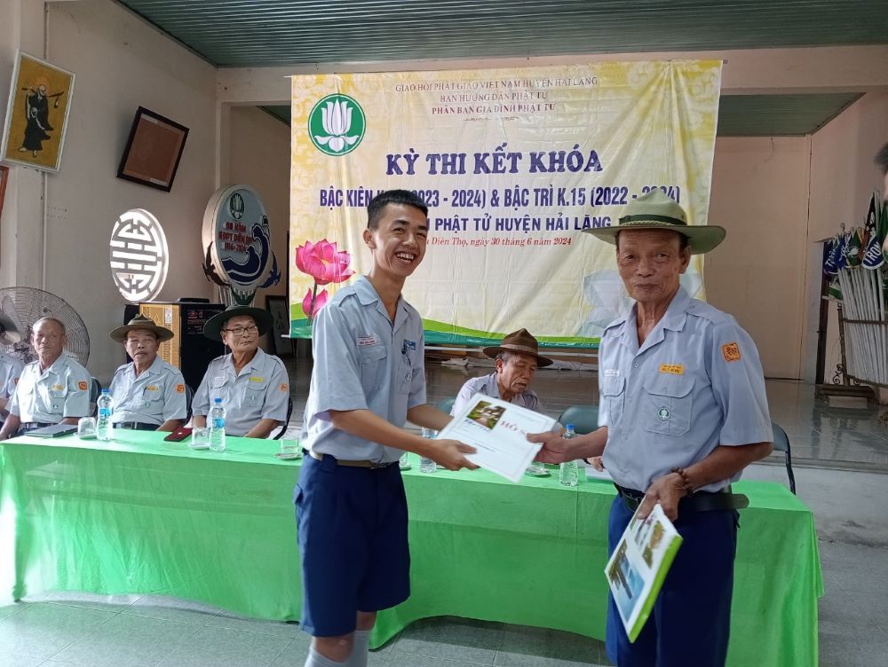 Thân lâm tham dự và chủ toạ lễ khai mạc có HTr cấp Tấn Tâm Thông Nguyễn Thị Chớ, Phó Trưởng Phân ban GĐPT Tỉnh; HTr cấp Tấn Tâm Chuyển Nguyễn Duy Phụ, Phó Trưởng Phân ban GĐPT Hải Lăng, cùng quý Huynh trưởng Ban Điều Hành khoá học, quý Huynh trưởng hội đồng thi tham dự đông đủ.