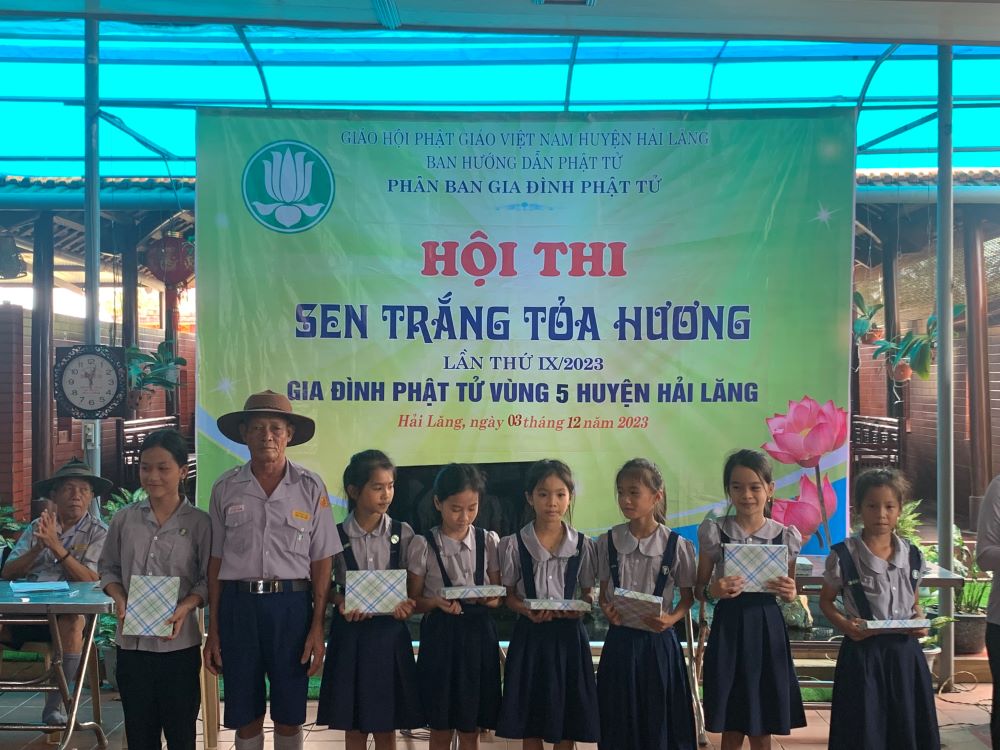 Vào các ngày 26/11/2023 và ngày 03/12/2023 và 14/10/Quý Mão và ngày 21/10/Quý Mão), tại các đơn vị GĐPT Vùng 3, Vùng 4 và Vùng 5, Phân ban GĐPT Huyện Hải Lăng tiếp tục tổ chức vòng loại Hội Thi Sen Trắng Tỏa Hương