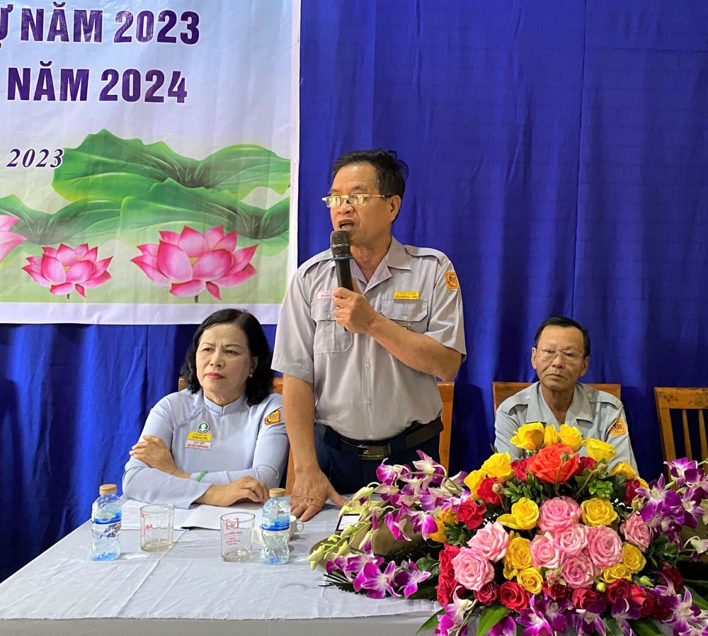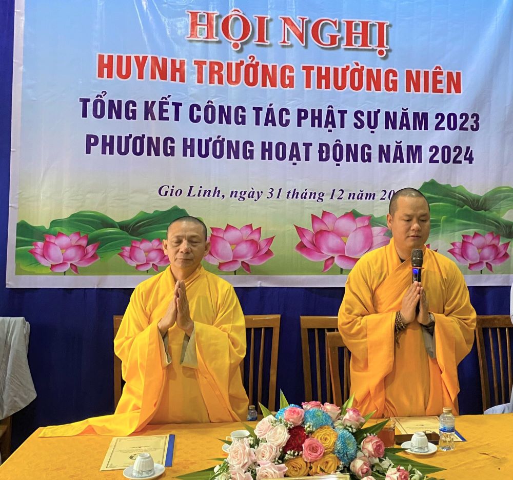 Sau diễn văn khai mạc Hội nghị của HTr cấp Tấn Tâm Bằng Hoàng Văn Thiện, Trưởng Phân ban GĐPT huyện Gio Linh. HTr cấp Tấn Như Chí Nguyễn Văn Minh, Phó trưởng Phân ban GĐPT huyện đọc Báo cáo tổng kết Phật sự 2023 và chương trình hoạt động Phật sự năm 2024.