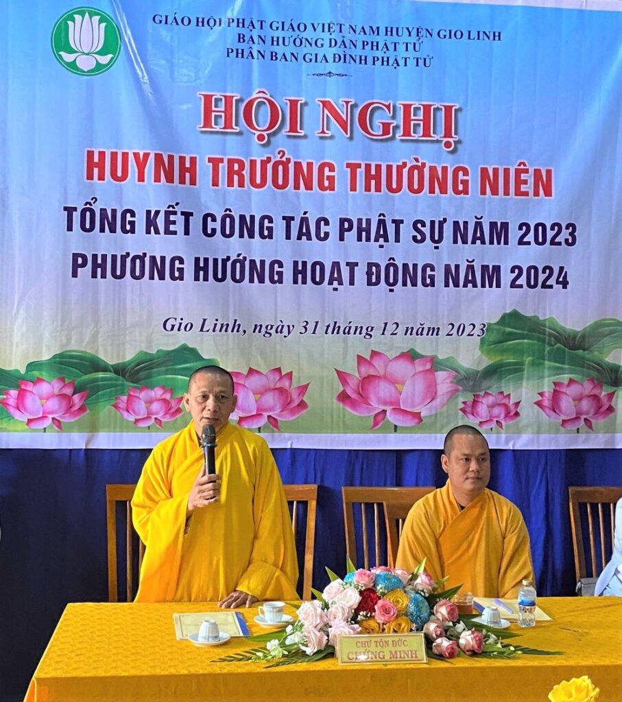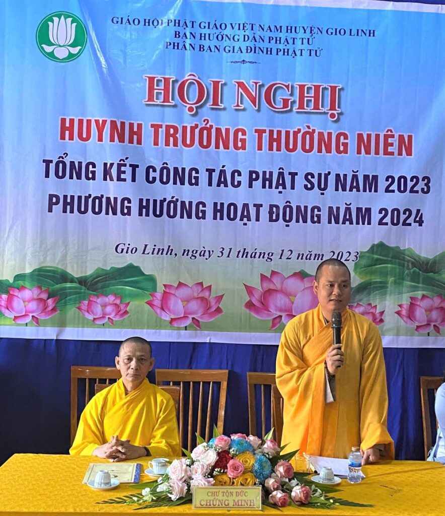 Quang lâm chứng minh hội nghị có TT. Thích Huệ Nhẫn, Phó trưởng Ban Trị sự – Trưởng ban Hoàng pháp GHPGVN tỉnh Quảng Trị – Trưởng Ban Trị sự GHPGVN huyện Gio Linh; ĐĐ. Thích Nguyên Chính, Ủy viên Thường trực Ban Trị sự GHPGVN tỉnh Quảng Trị – Phó trưởng Ban Trị sự – Trưởng ban Hướng dẫn Phật tử GHPGVN huyện Gio Linh; SC. Thích Nữ Thoại Huyền, Ủy viên Ban Trị sự GHPGVN huyện Gio Linh – Phó trưởng ban Hướng dẫn Phật tử huyện.